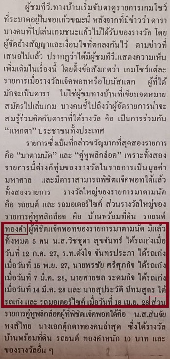 ข้อมูลตีพิมพ์ใน นสพ.ไทยรัฐ, เดือน เม.ย. 2528