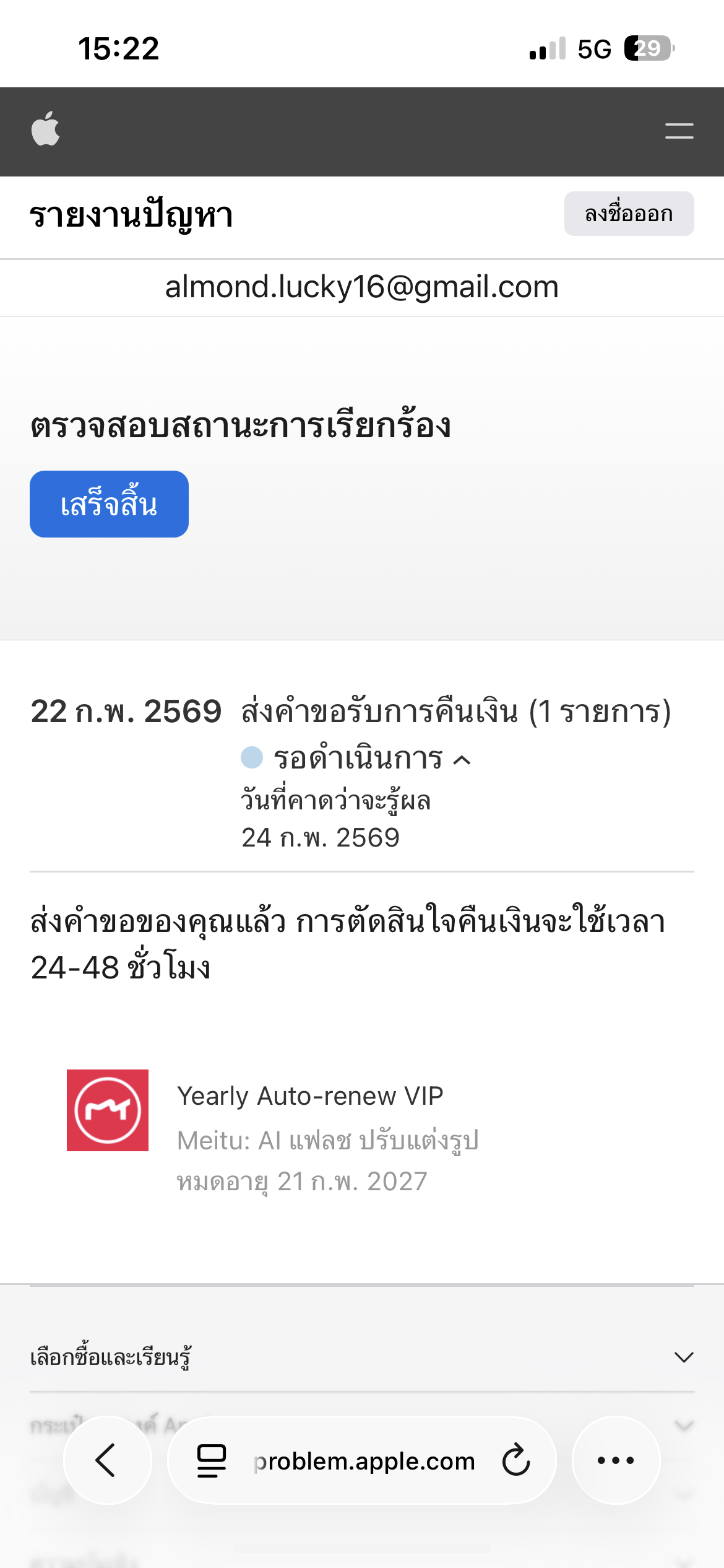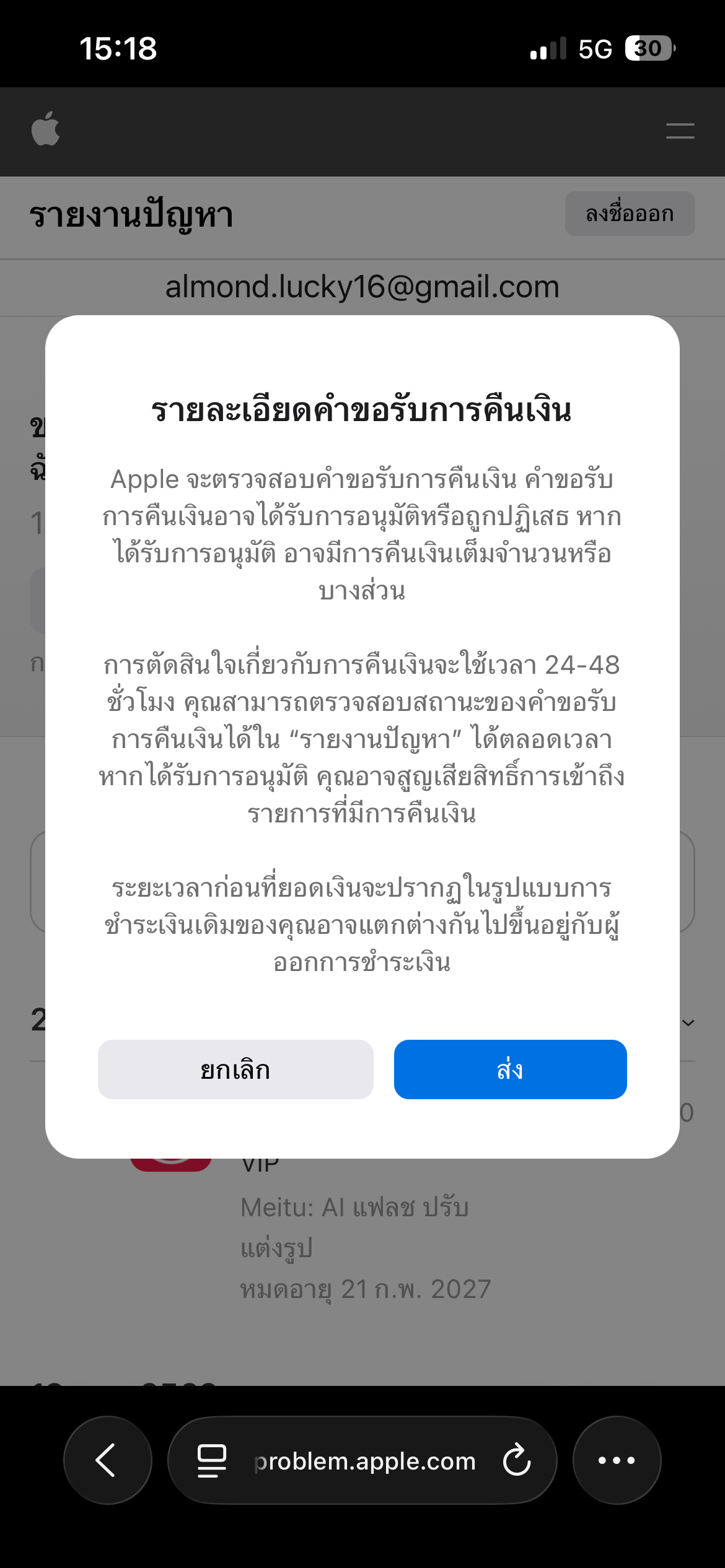 คือผมได้ผูกบัญชีappleกับshopee payเพื่อจะชำระค่าแอพของเดือนก่อน โดยในshopee payเวลาจะชำระจะตัดผ่านบัตรธนาคารscbแล้วทีนี้พอมาถึงต้นเดือน ผมลืมไปยกเลิก แล้วเค้าก็มาตัดไปเองในวันที่28 ทีนี้ผมก็ยื่นrefund