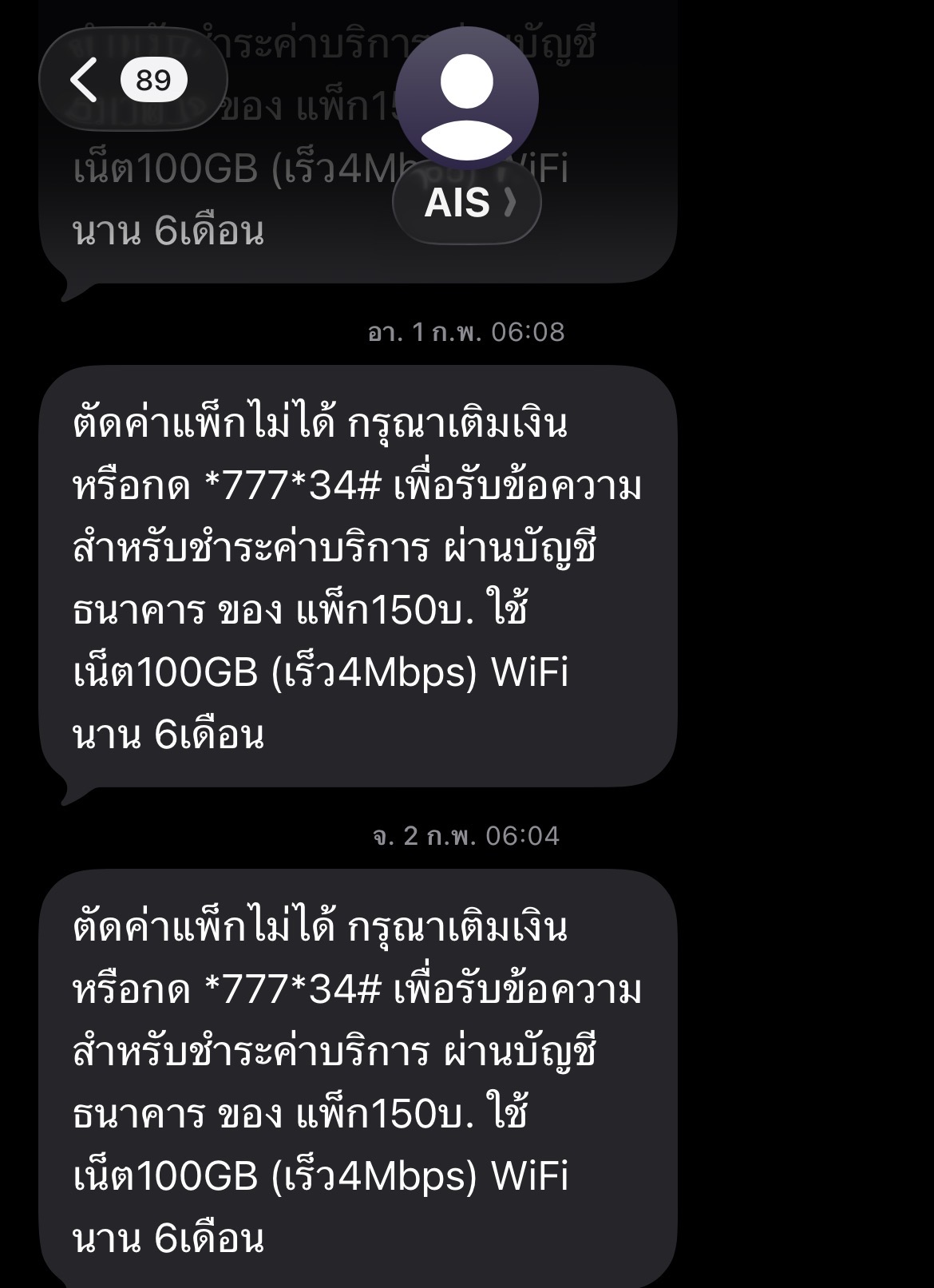 ตัดค่าบริการตามสัดส่วนไม่ได้AIS