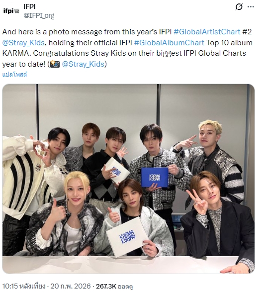 Stray Kids อัลบั้มอย่างเป็นทางการ KARMA ที่ติดอันดับท็อป 10 ในชาร์ตอัลบั้มระดับโลกของ IFPI Global Album Chart