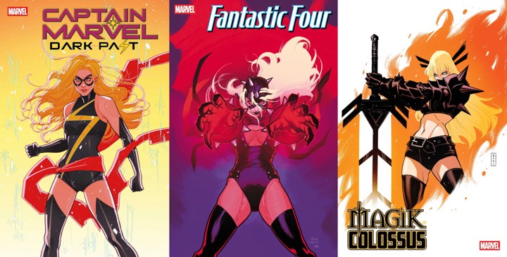 ธีมปก variant เดือนนี้ได้แก่... Civil War Celebrationl!! แต่ไม่มีตัวอย่างซักภาพเลยไม่รู้เป็นแนวไหน ส่วนธีมรองชื่อ What If...? (อันนี้ของทีม Stormbreakers) แต่ก็ไม่มีตัวอย่างซักภาพเหมือนกัน เพราะงั้นเอาภาพสาว ๆ มาขัดดอกไปละกันนาครับ