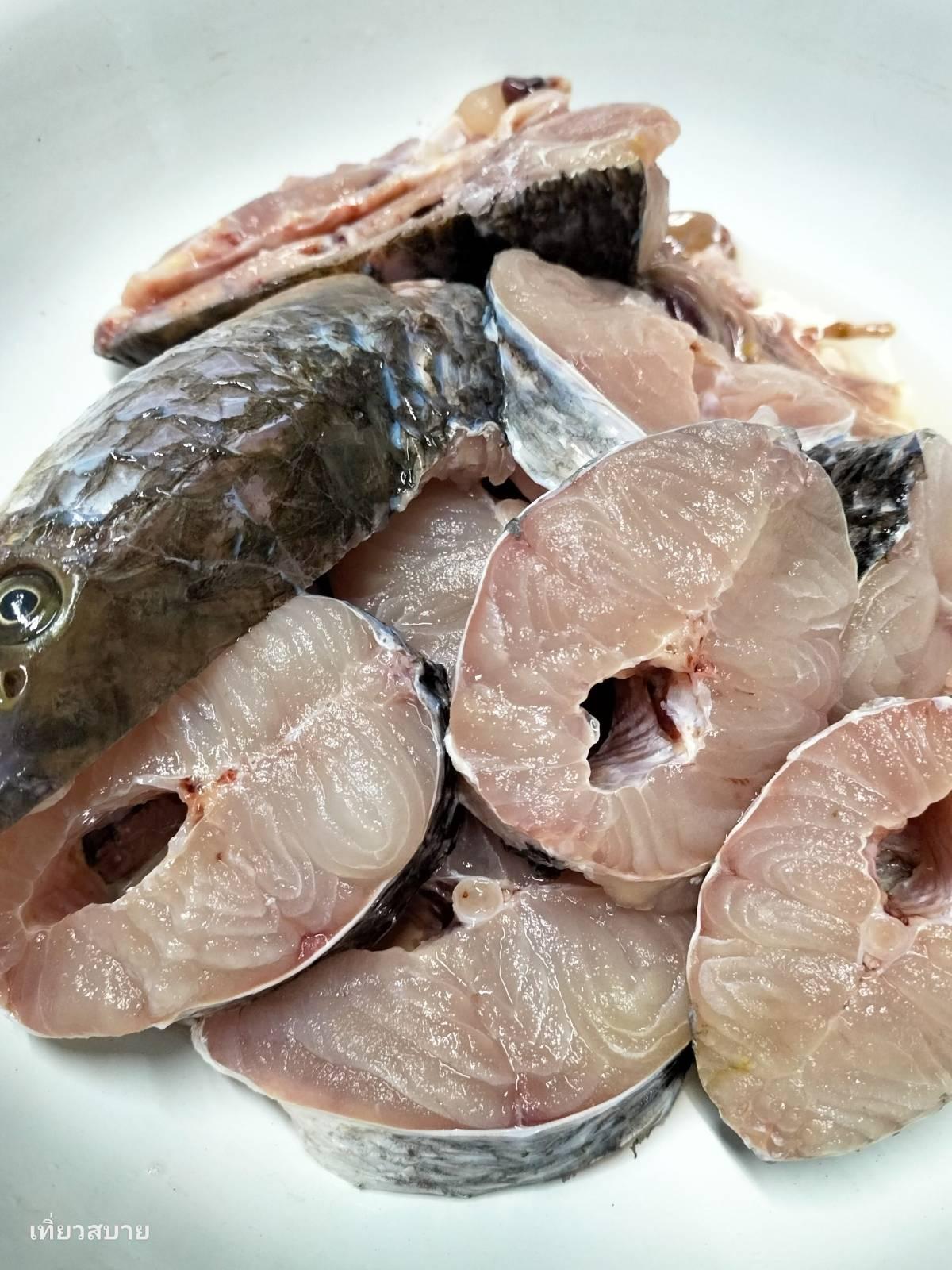 1. ปลาช่อนนา (หั่นชิ้นหนาสักนิด เวลาต้มจะได้ไม่และ) ล้างด้วยเกลือเพื่อลดเมือก