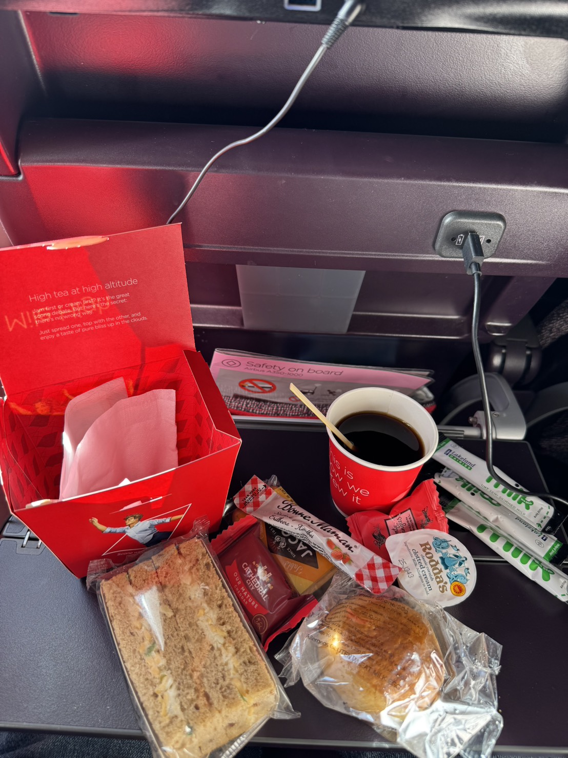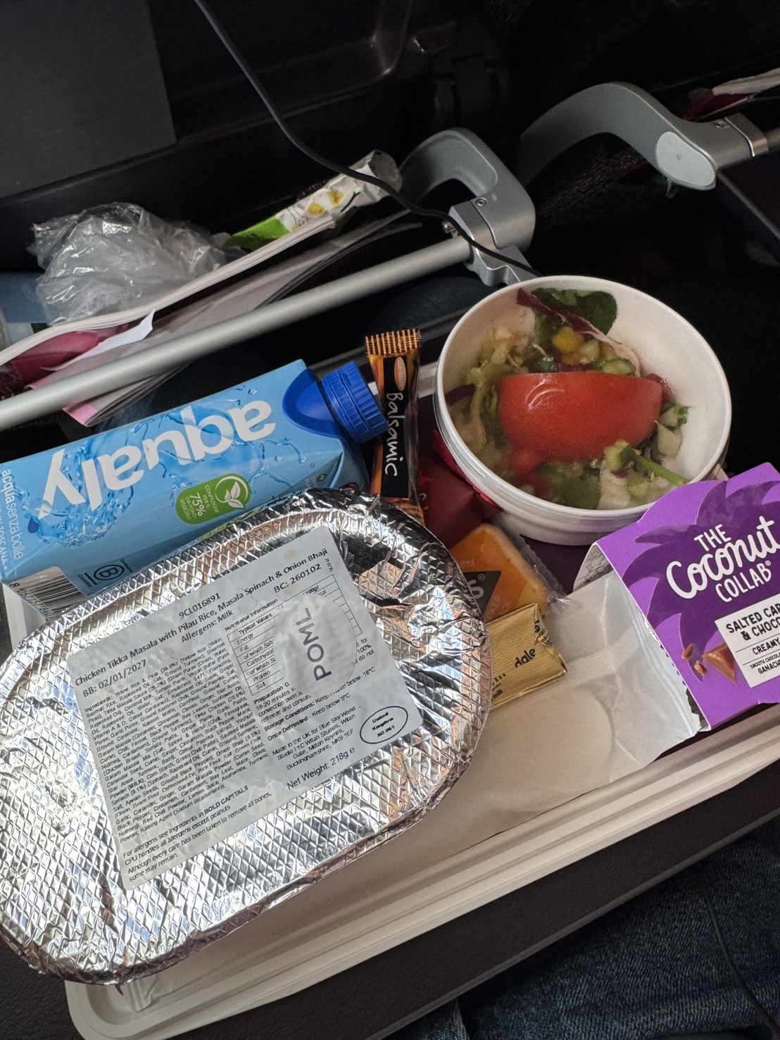 ในระหว่าง Flight ทางสายการบินจะมี snack + Main + afternoon tea ตามสไตล์อังกฤษครับ