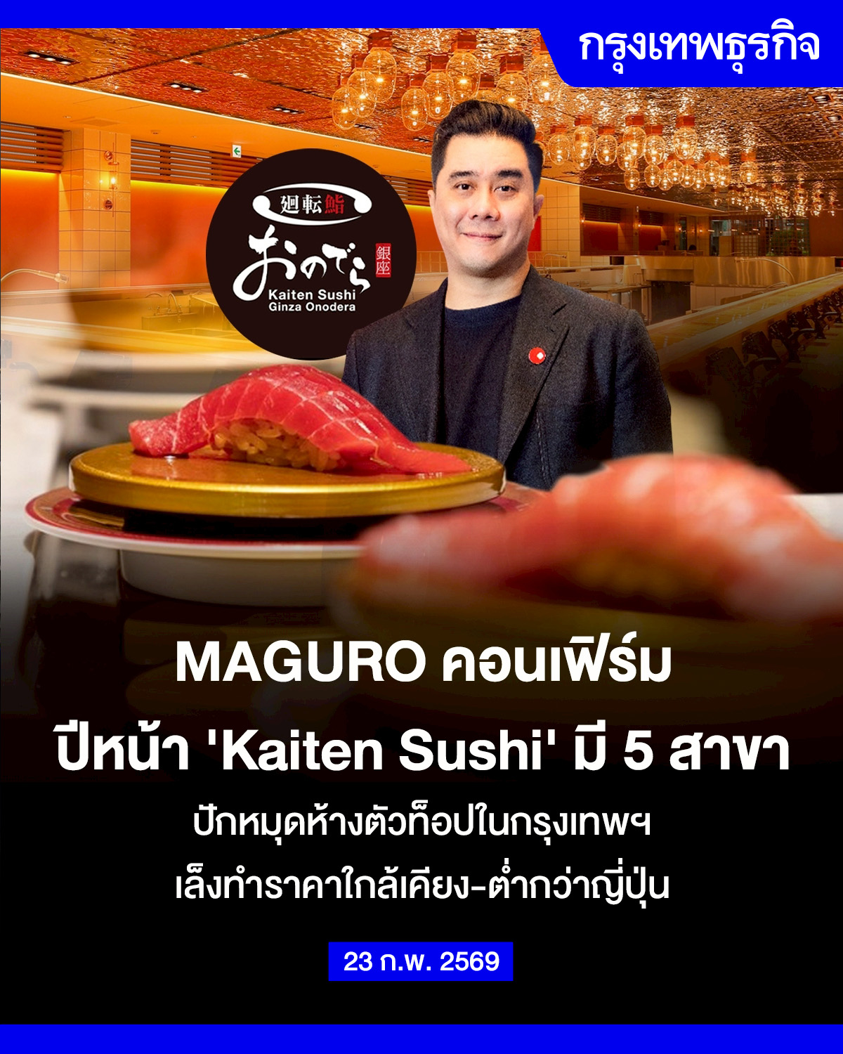 🍣 MAGURO ลุยตลาดซูชิสายพาน! ปีหน้ามา 5 สาขา “Kaiten Sushi Ginza Onodera” จะปังไหม?