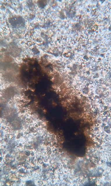 รูปที่ 4 ขึ้นไป ก็จะเจอ เศษเนื้อปู และแบคทีเรีย ส่วนเหลืองๆ คือมันปูนั่นเอง