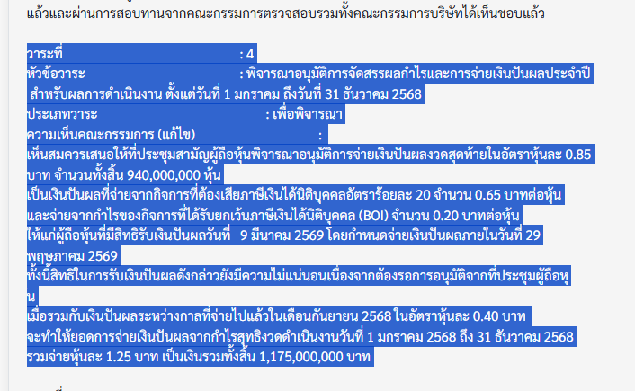 CPAXT : บริษัท ซีพี แอ็กซ์ตร้า จำกัด (มหาชน) ประกาศผลประกอบการ พร้อมจ่ายปันผล