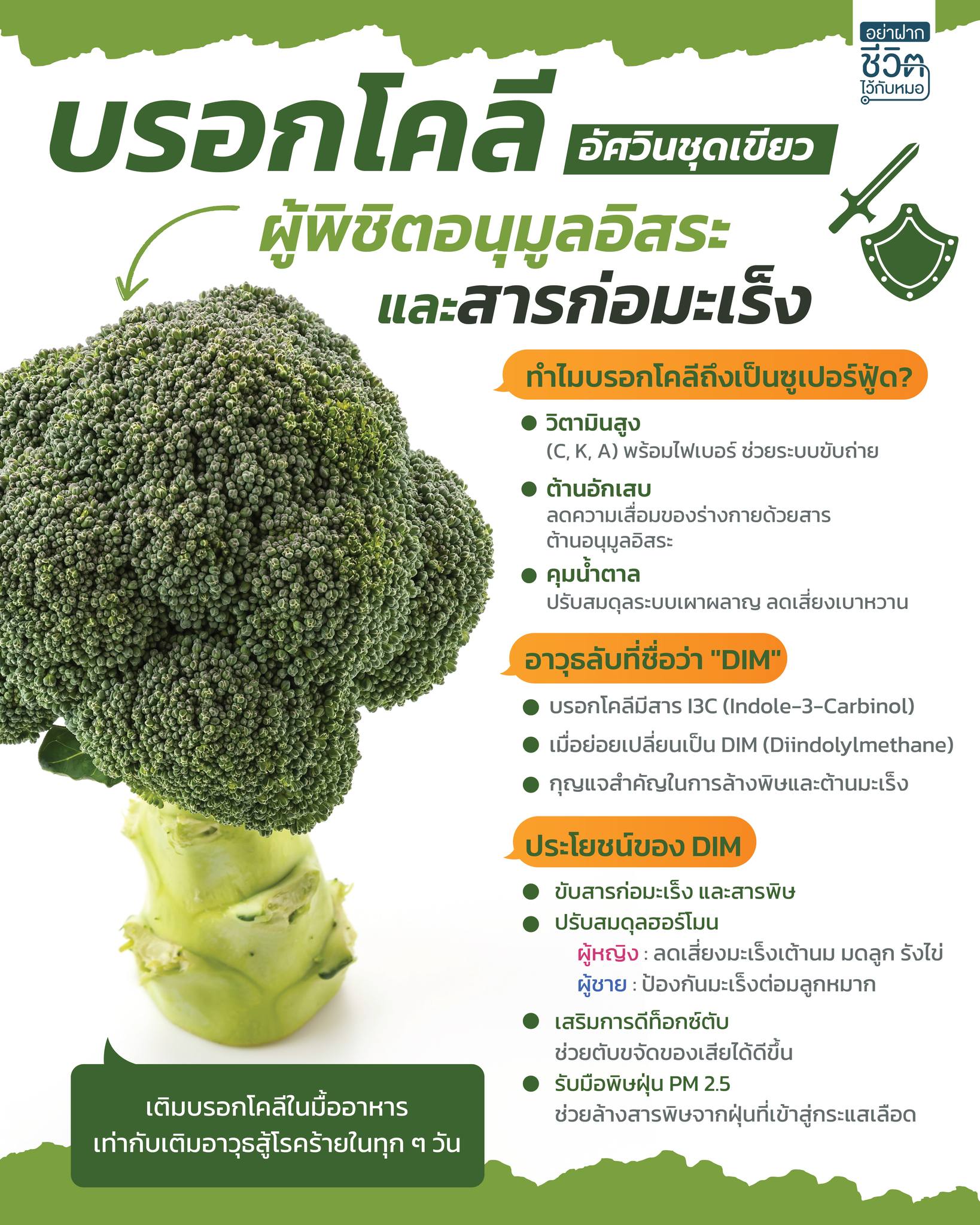 การเพิ่มบรอกโคลีลงในมื้ออาหาร ไม่ใช่แค่การกินผัก แต่คือการเติม "อาวุธ" ให้ร่างกายพร้อมสู้กับโรคมะเร็งและมลภาวะในทุกๆ วัน 🌸