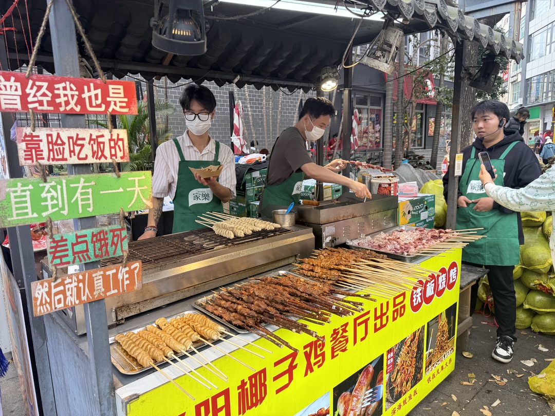 ร้านนี้ขายเนื้อย่าง หมึกย่าง ราคาไม้ละ 15 หยวน ข้างๆร้านขายน้ำมะพร้าวน้ำหอมจากเมืองไทย