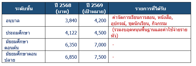 ตาราง: อัตราเงินอุดหนุนรายหัวต่อคนต่อปี (ปีงบประมาณ 2568 - 2569)
