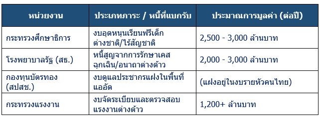 เงินที่รัฐต้องจ่ายเพื่อดูแลคนจากประเทศเพื่อนบ้าน และหนี้ของหน่วยงานต่างๆที่ต้องแบกรับ