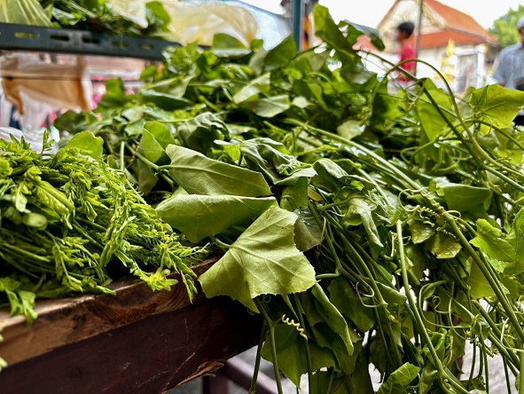 ผักตำลึง 20 บาท ... เจ้าประจำ แผงอยู่ติดกับลานจอดรถของวัดเลย