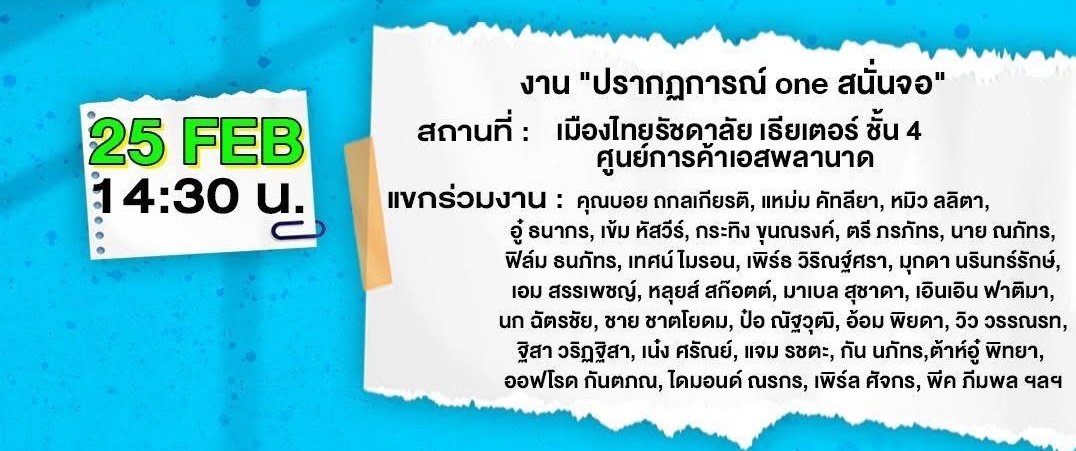 อีก 2 วัน เตรียมสัมผัสประสบการณ์สุดพิเศษที่คุณไม่ควรพลาด "ปรากฏการณ์ one สนั่นจอ 2026" ปรากฏการณ์แห่งปี ที่จะพาทุกคนไปพบกับเหล่านักแสดงและศิลปินที่คุณชื่นชอบ พร้อมคอนเทนต์หลากหลาย ครบรส ที่