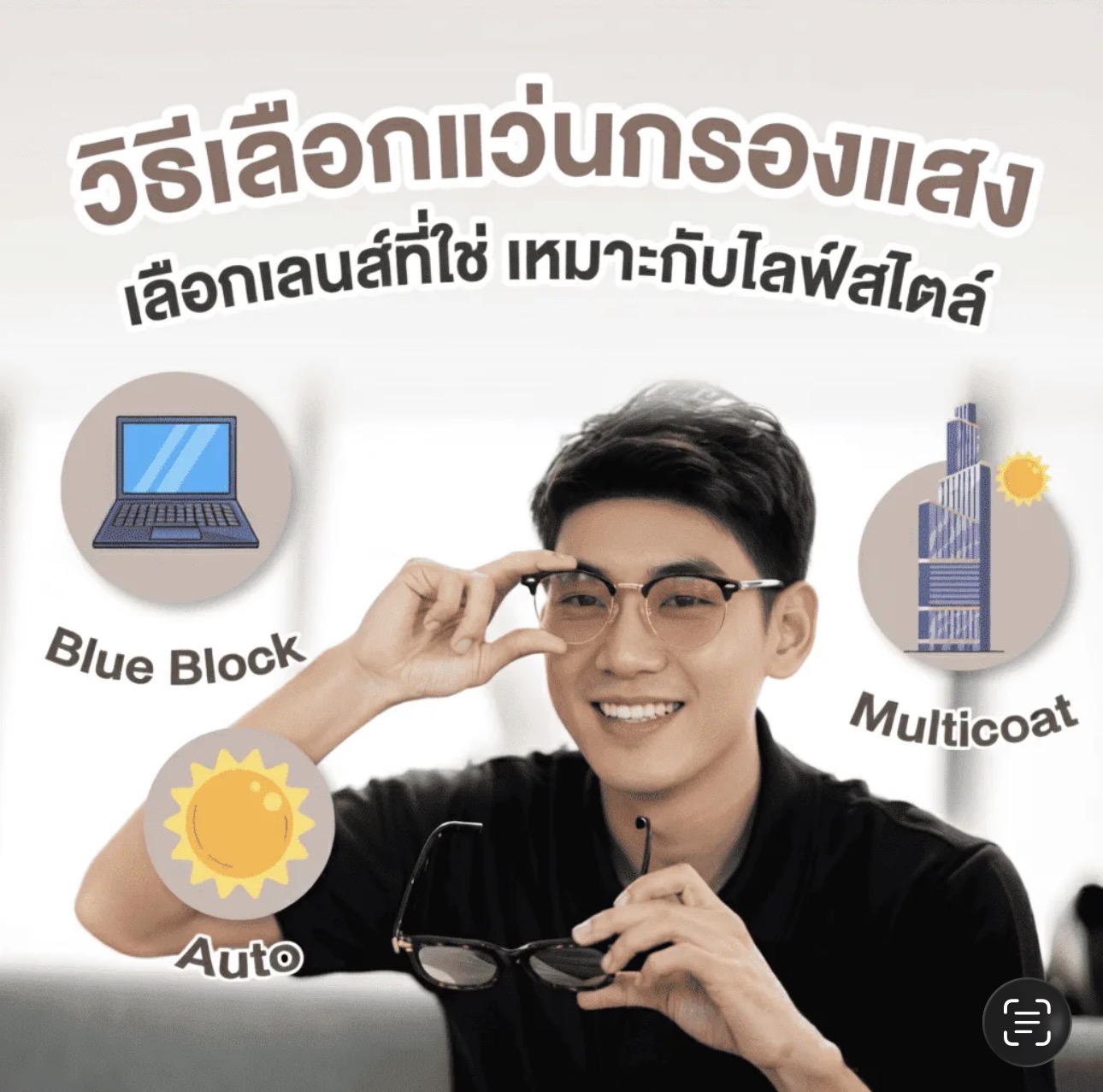 ข้อควรรู้ : เลนส์ชนิดนี้ รวมคุณสมบัติของเลนส์กรองแสงและแว่นกันแดดไว้ในอันเดียว