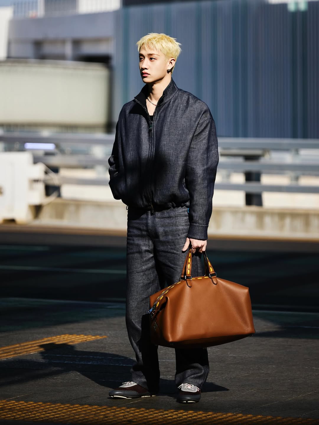 เฟนดิ แจ็กเก็ต กระเป๋า และกางเกงที่ชานสวมใส่ขณะออกเดินทางไปมิลาน