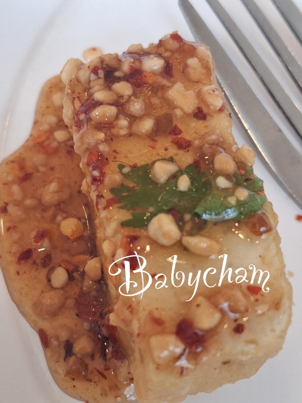 เมนูแรกที่ เป็นของผู้ใหญ่ แล้วเด็กๆไม่แตะกันเลย เต้าหู้ทอดค่ะ ร้านเขาแจ้งไว้ว่าทำเต้าหู้เองด้วย ไม่ได้ซื้อจากที่ไหนมา ทางร้านทำเองหมดค่ะ