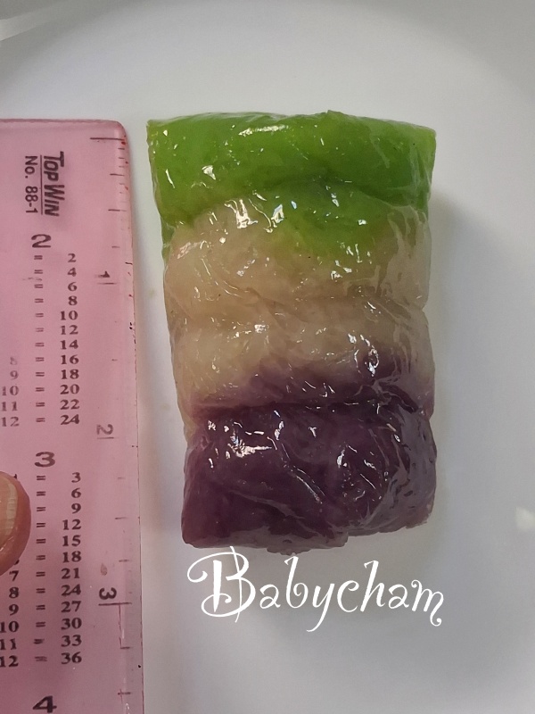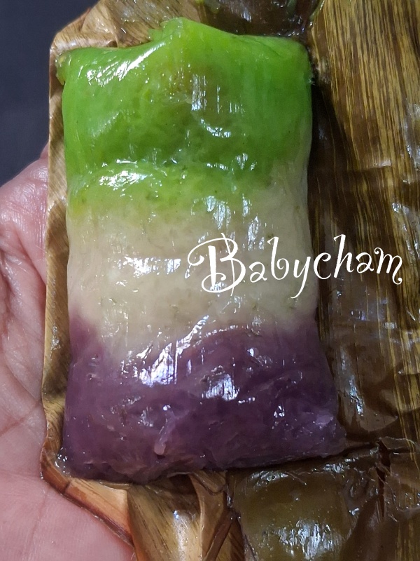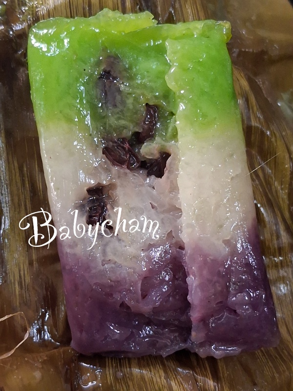 แม่เปปซื้อข้าวต้มผัดกะทิสด 3 สี กลับมาบ้านค่ะ 3 ชุดๆ ละ 4 มัด เขามีเลือกไส้เผือก ไส้กล้วย หรือรวมก็ได้ กลับมาถึงบ้านก็เกือบ 2 ทุ่มละค่ะ ก็จับใส่ตู้เย็นไว้ เช้านี้ก็นำออกมากินเป็นอาหารเช้า