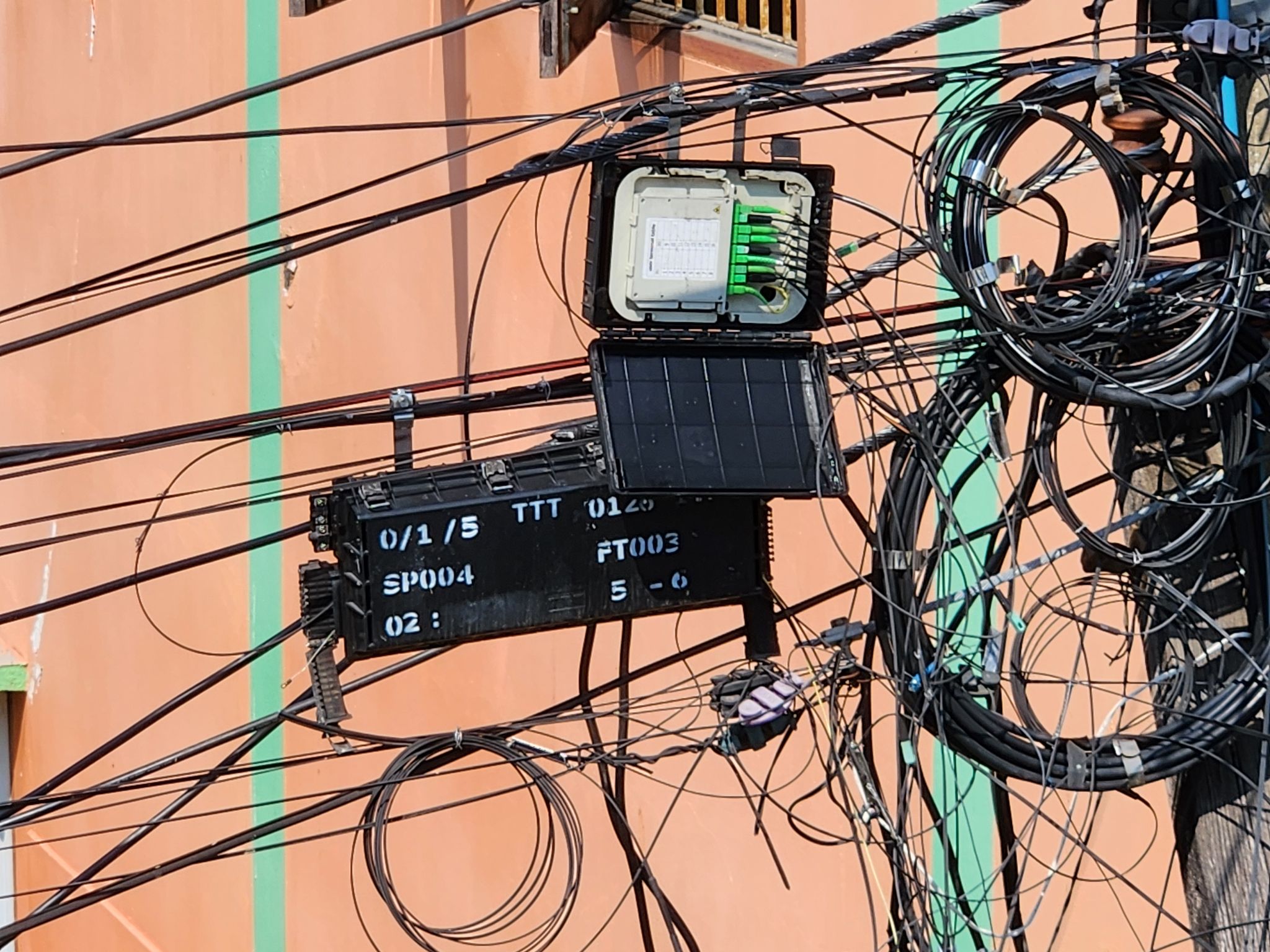 เห็นกล่องชุมสาย fiber บนเสาไฟเปิดอ้า