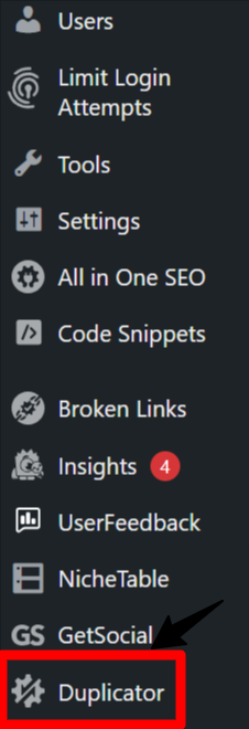 เข้าไปที่หน้าแดชบอร์ดของ Duplicator แล้วกดปุ่ม