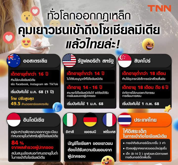 ปัจจุบันถึงแม้จะไม่เกี่ยวกับ Dark Web ทั้งหมด แต่หลายชาติก็เริ่มควบคุม เยาวชน อายุไม่เกิน 16 เข้าถึงโซเชียล