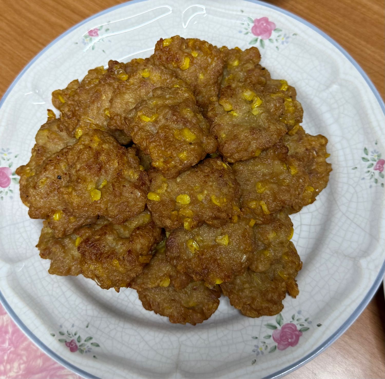 หมูเด้งพริกไทยกระเทียมข้าวโพดปั้นทอด