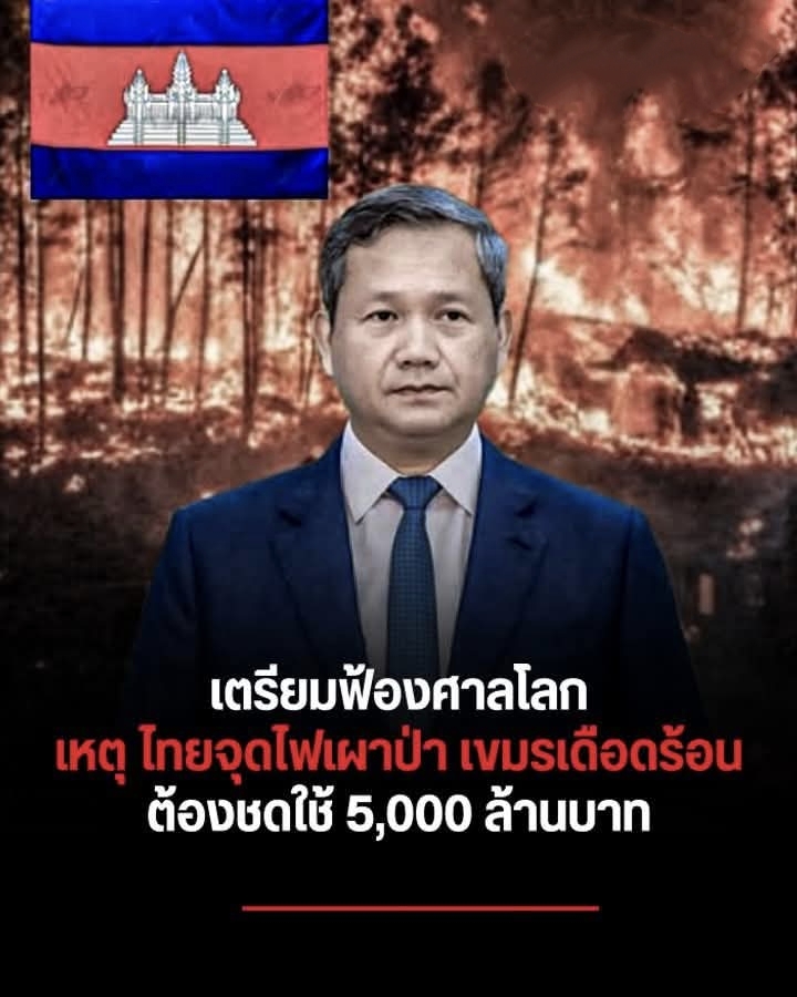 สมเด็จมหาบวรธิบดีฮุนมาเนต เรียกร้องให้ไทยชดใช้ 5,000 ล้านบาท หลังอ้างว่าไทยเผาป่าสร้างความเสียหาย