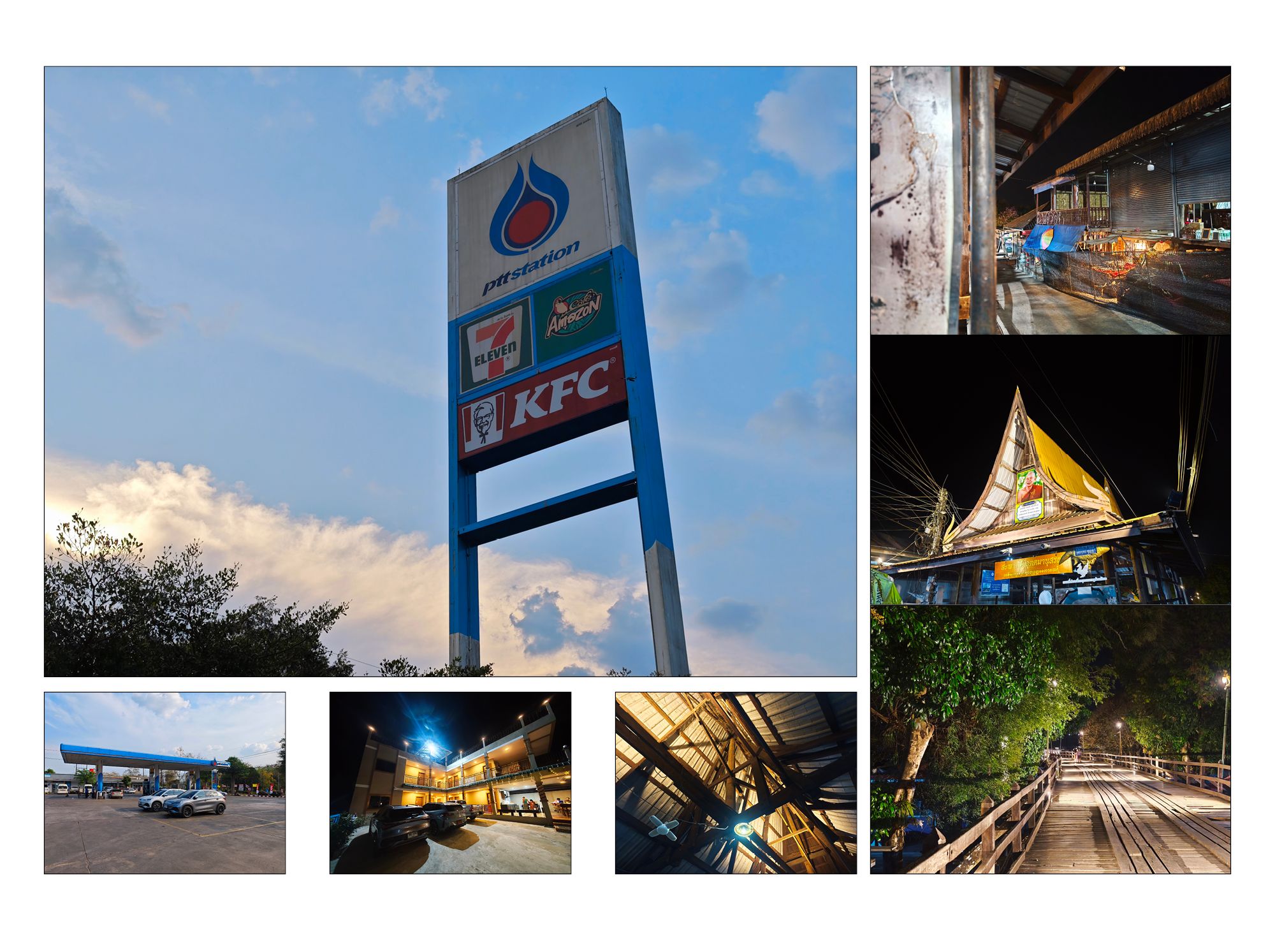 อธิบายให้เห็นภาพหน่อย ผมเรียกแยกนี้ว่า "แยกทองผาภูมิ" ก็แล้วกัน ตรงนี้จะมีทางแยกซ้ายขวาคล้ายตัว Y โดยทางขวาคือสะพานมอญ และทางซ้ายคือทางไปหมู่บ้านอีต่อง คืนแรกผมเลือกสะพานไม้เก่า ซึ่งจะต้องขับรถไปทางขวามือ และจากตรงนั้นไปจะไม่มีสถานีชาร์จแบตให้กับผมอีกเลย ผมใช้เวลาค้นหาอยู่ครู่ใหญ่ด้วยความไม่รู้ ก่อนจะพบว่ามีสถานี 2 แห่งที่เป็นเหมือนจุดต่อลมหายใจ