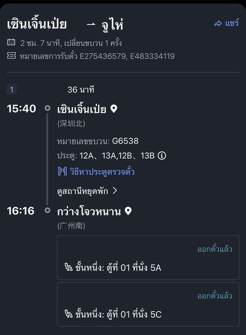 แผนการเดินทาง คือจาก เซินเจิ้นเป่ย Shenzhenbei ผ่าน กวางโจวหนาน Guangzhounan แล้ว ลงที่ จูไห่ Zhuhai ตรงด่านกงเป่ย Gongbei ครับ