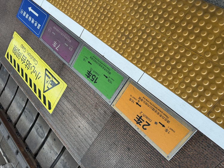 ที่นี่การรอขึ้นรถไฟ เราจะไปยืนรอตรงป้ายตามนี้ครับ จริงๆในป้ายประกาศจะมีบอกมาร์คสีครับ แล้วไปยืนรอให้ถูกประตูครับ ถ้าไม่ชัวร์ให้ถามคนข้างๆครับ