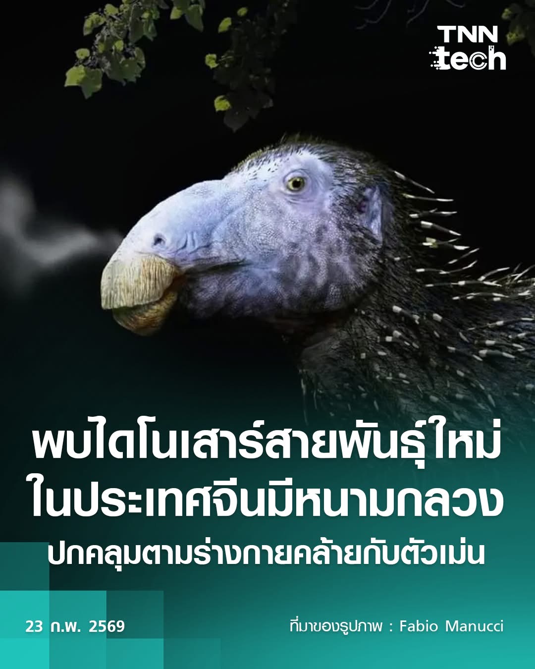 นักบรรพชีวินวิทยาค้นพบไดโนเสาร์สายพันธุ์ใหม่ในภาคตะวันออกเฉียงเหนือของประเทศจีน ซึ่งมาพร้อมกับลักษณะผิวหนังที่ไม่เคยพบเห็นมาก่อนในไดโนเสาร์ชนิดใดในโลก นั่นคือการมีหนามกลวงปกคลุมตามร่างกายคล้ายกับตัวเม่น