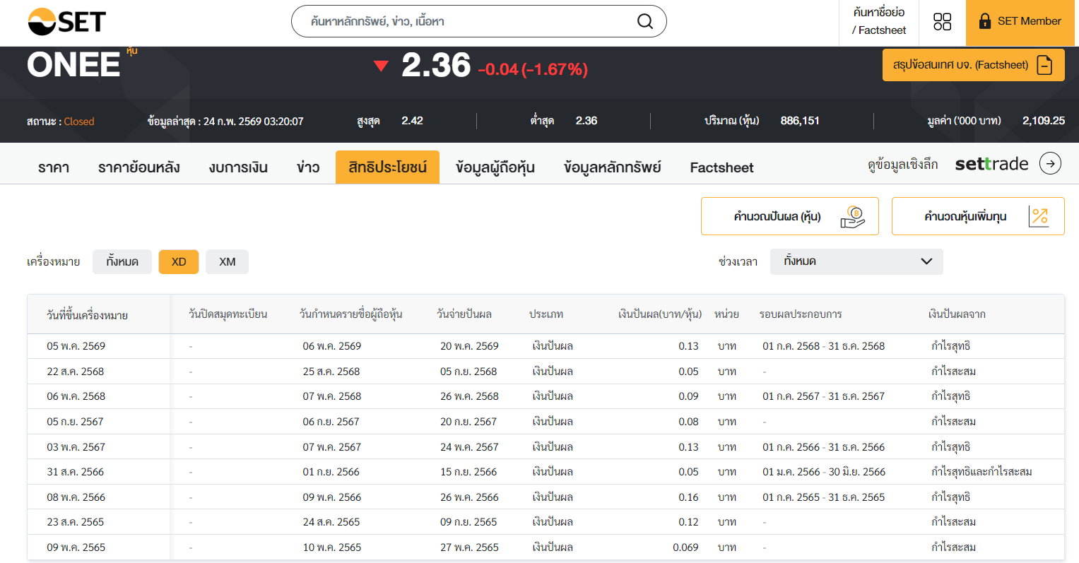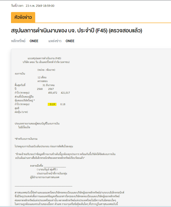 ONEE งบปี 2568 + ประกาศปันผล