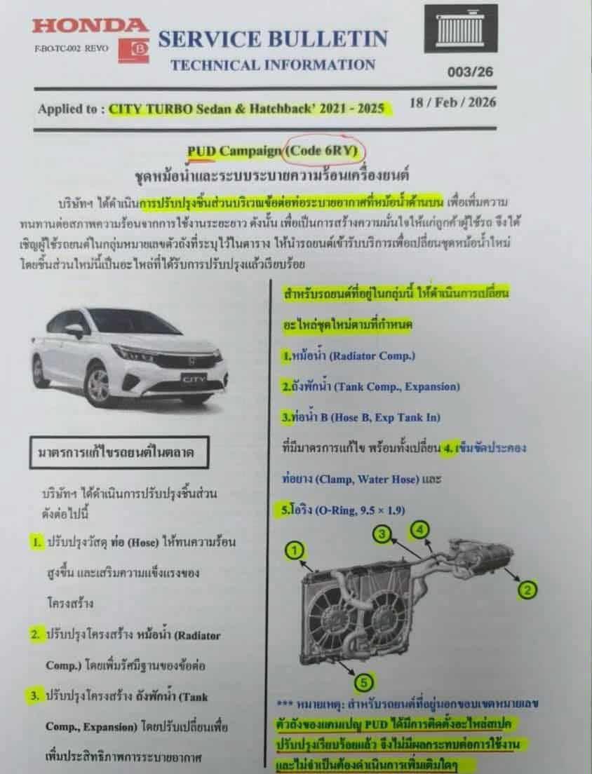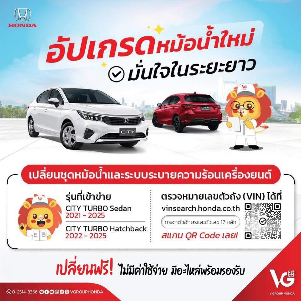 [OFFICIAL] Honda ประกาศแคมเปญอัปเกรดระบบระบายความร้อน (หม้อน้ำ) Honda City Turbo รุ่นปี 2021-2025 ฟรีไม่มีค่าใช้