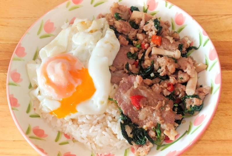 เข้าครัวทำ กะเพราสันคอหมูสับไข่ดาว ค่ะ