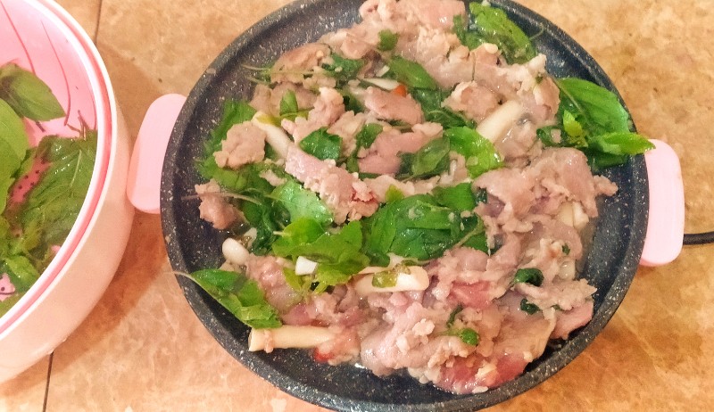 ค้างอยู่ตามรูป เพิ่งใส่หมูกับเห็ดลงไปเอง