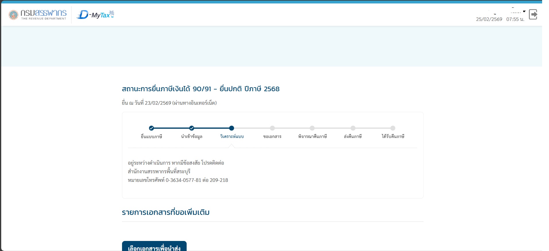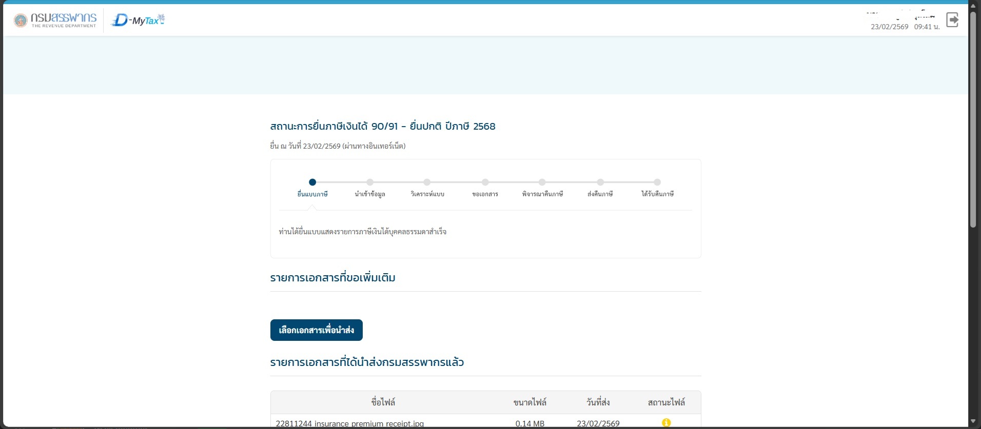25.. ก.พ. 2569 > ตรวจสอบในระบบ D-MyTax (สถานะนำเข้าข้อมูล)
