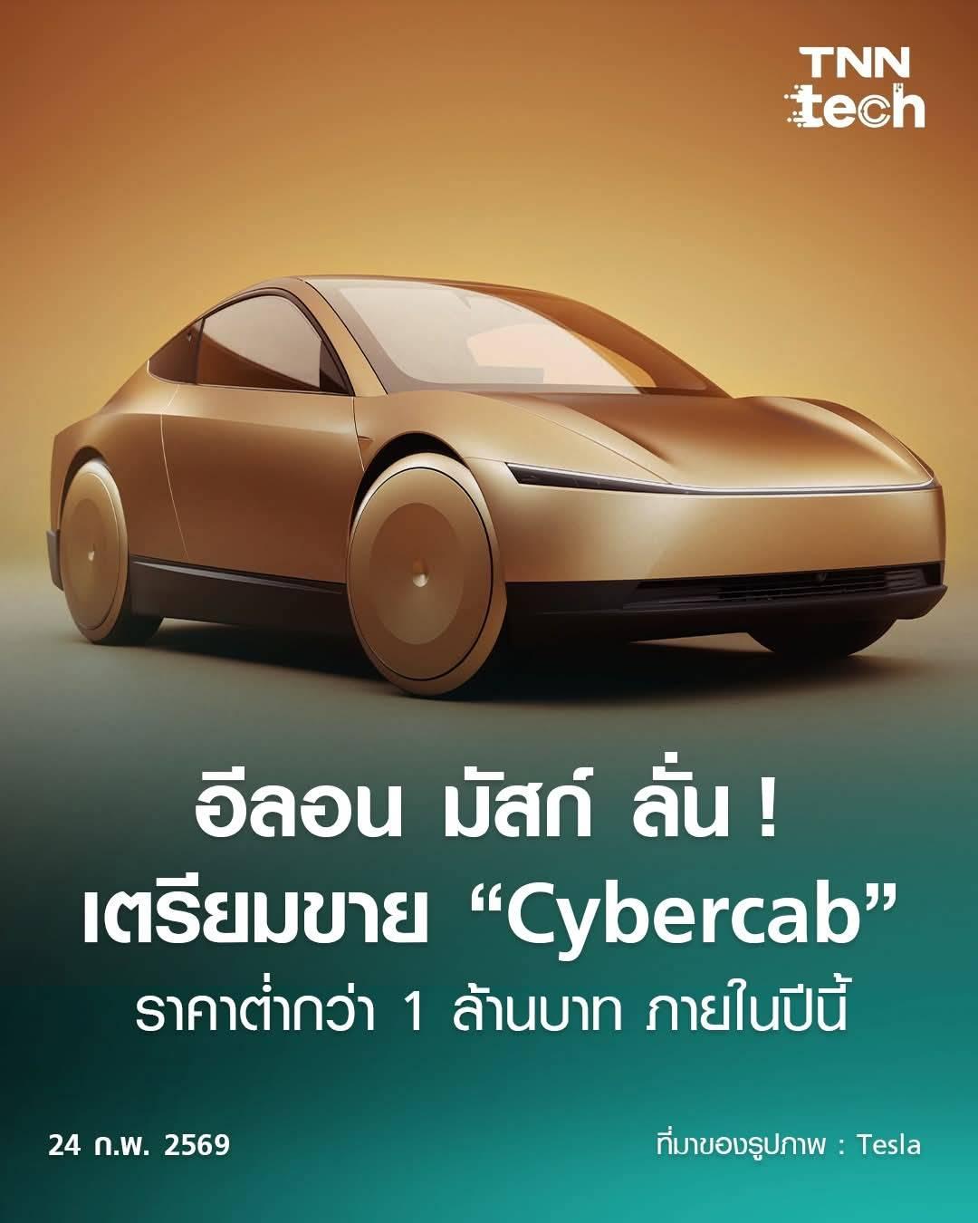 อีลอน มัสก์ ลั่น ! “Tesla” เตรียมวางจำหน่าย “Cybercab” ในราคาต่ำกว่า 1 ล้านบาท ภายในปีนี้ ❗️