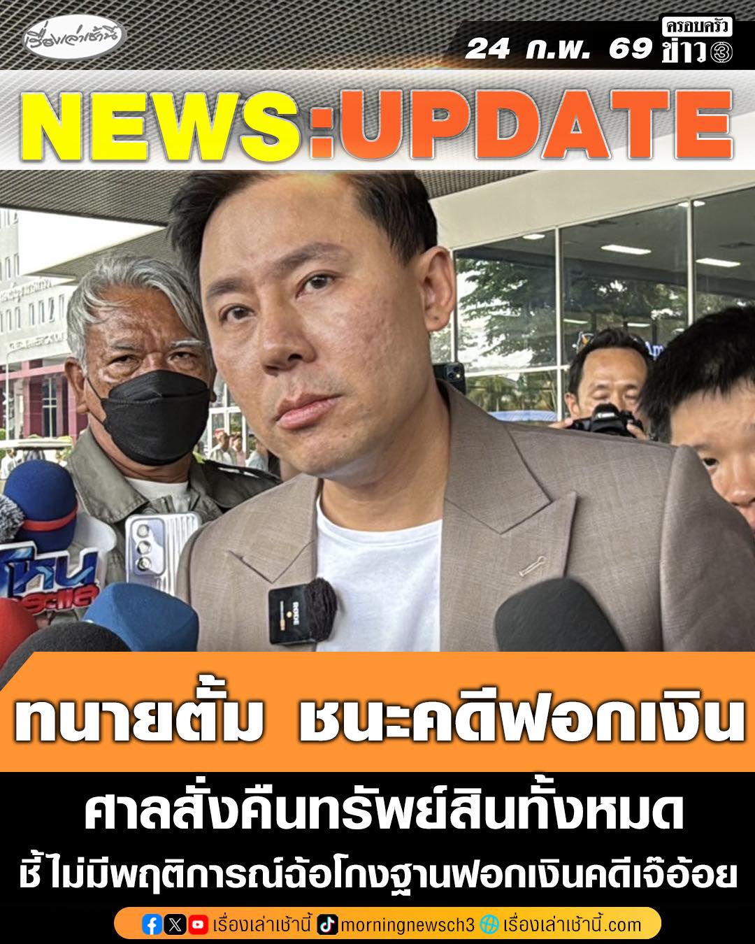 ด่วน! ศาลแพ่งยกคำร้อง-สั่งคืนทรัพย์สิน "ทนายตั้ม" ทุกรายการ ชี้ปม "เจ๊อ้อย" ให้โดยเสน่หา ไม่ใช่การฟอกเงิน ไม่มีพฤติกรรมฉ้อโกง