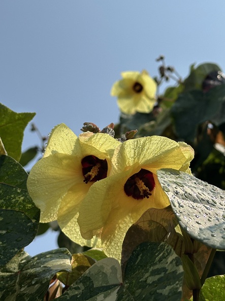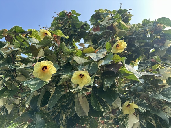 - ดอก: ดอกมีรูปร่างคล้ายดอกชบา ออกตามซอกใบหรือปลายกิ่ง ดอกมีสีเหลืองสดและมีแต้มสีแดงเข้มที่กลางดอก ที่น่าทึ่งคือ ดอกจะเปลี่ยนสีเป็นสีส้มหรือแดงอิฐก่อนจะร่วงหล่นภายในวันเดียว