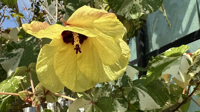 - ดอก: ดอกมีรูปร่างคล้ายดอกชบา ออกตามซอกใบหรือปลายกิ่ง ดอกมีสีเหลืองสดและมีแต้มสีแดงเข้มที่กลางดอก