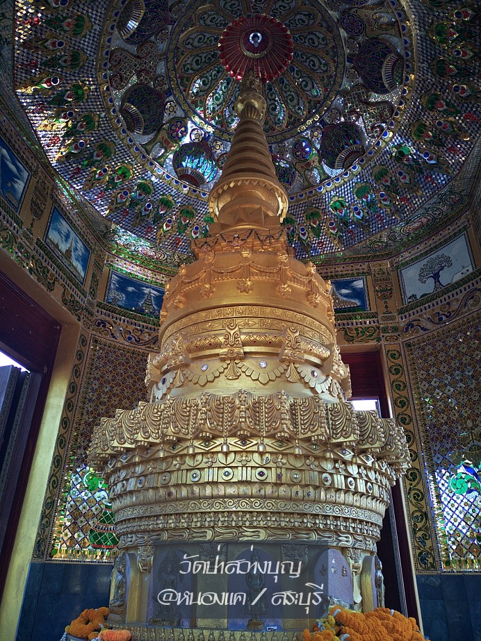 ส่วนในโลหะเจดีย์ก้อจะมีจุดกราบไหว้ (ห้ามนำะูปเทียนมาจุดในนี้นะครับ)