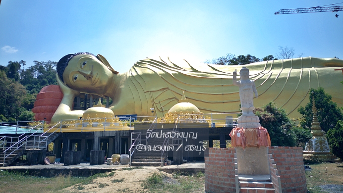 องค์พระนอนที่เห็นด้วยว่าใหญ่ที่สุดในไทยจริง ด้านข้างก้อจะมีองค์พระปางขัดสมาธิ เลยไปก้อเจดีย์วางเป็นแนวยาวไป