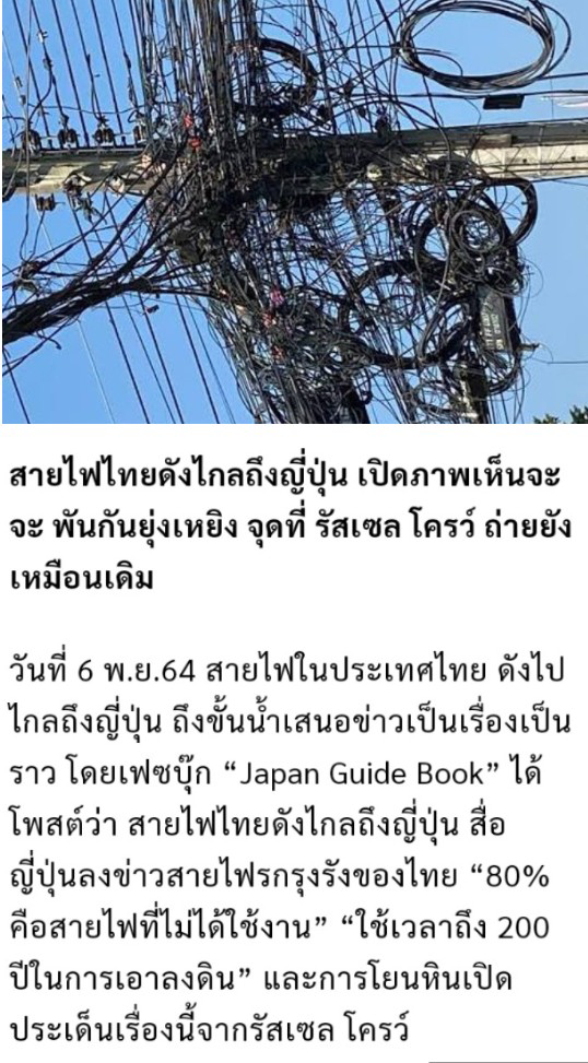 นักท่องเที่ยวต่างชาติส่วนมากที่มาไทย 1 ในภาพที่ต้องโพสต์และแชร์ในโซเชียลคือภาพ สายไฟฟ้า ตามท้องถนน มันเป็นอะไรที่ amazing มากๆ เรียกว่ากลายเป็น 1 ใน Soft Power ของการท่องเที่ยวไทยให้นักท่องเที่ยวมาถ่ายภาพ
