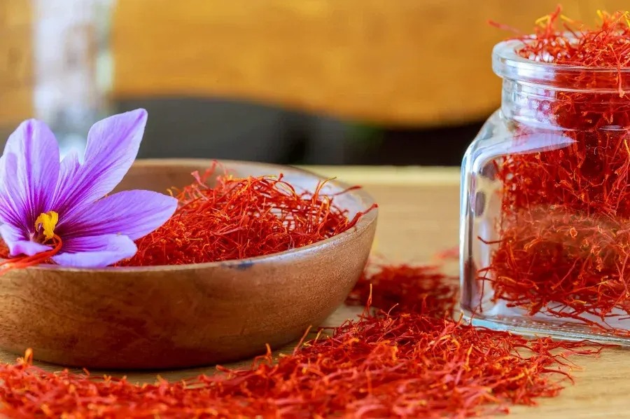 3. หญ้าฝรั่น (Saffron) - "ทองคำสีแดง" ครื่องเทศที่มีราคาแพงที่สุดในโลก ได้มาจากเกสรตัวเมียสีแดงสด 3 เส้นของดอกแซฟฟรอนโครคัส (Crocus sativus) มีกลิ่นหอมเฉพาะตัวและให้สีเหลืองทอง นิยมใช้แต่งสีและกลิ่นในอาหาร เช่น ข้าวหมกสเปน (Paella) ขนมหวาน และชาร้อน มีสรรพคุณทางยาช่วยต้านอนุมูลอิสระ บำรุงหัวใจ และบำรุงโลหิต