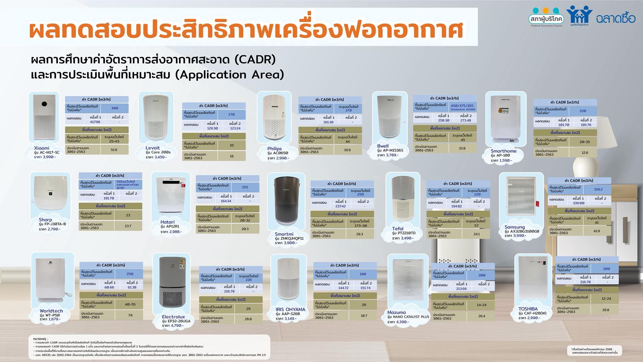 เปิดผลทดสอบ "ฉลาดซื้อ" เครื่องฟอกอากาศ 15 รุ่น! มี มอก. แค่กันไฟดูด แต่กรองฝุ่น "ไม่ตรงปก" 1 ใน 3? รุ่นไหนรอด-ไม่รอดมาดู
