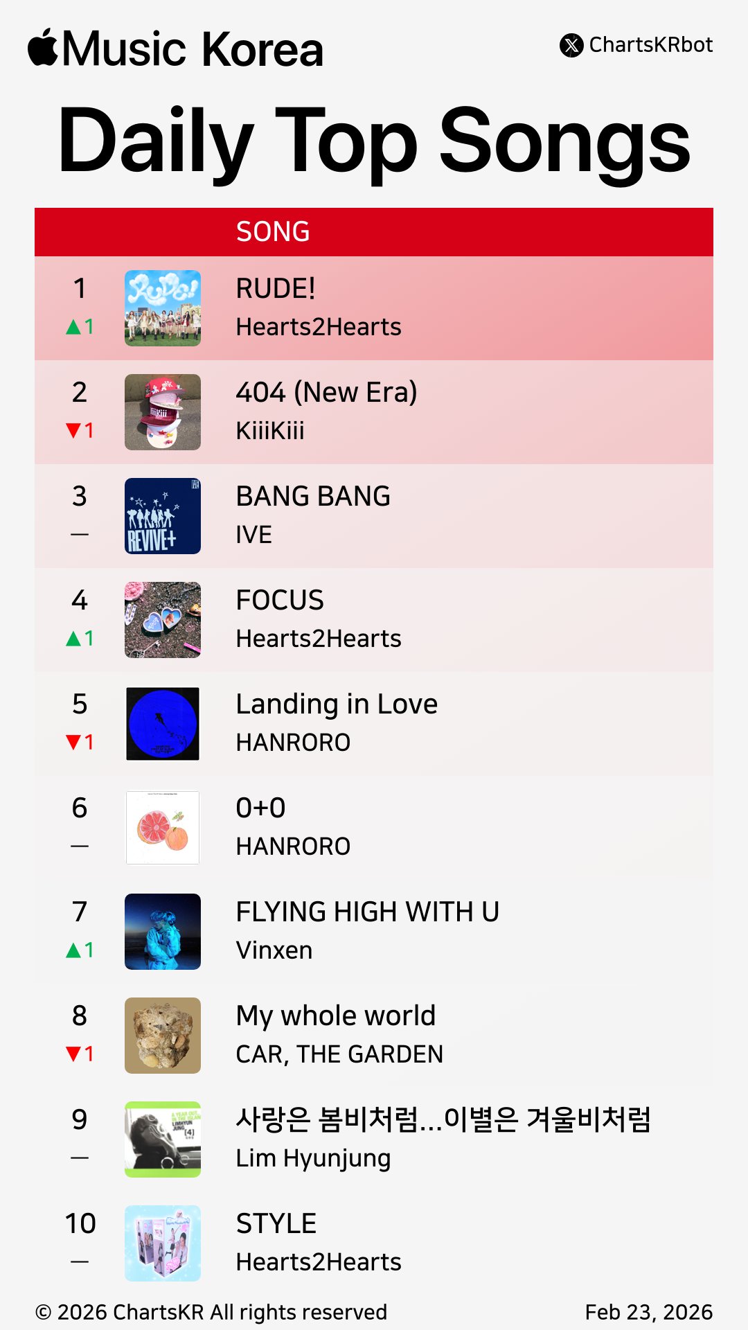 Hearts2Hearts “RUDE!” ขึ้นอันดับ 1 Apple Music South Korea Top 100 ได้สําเร็จ