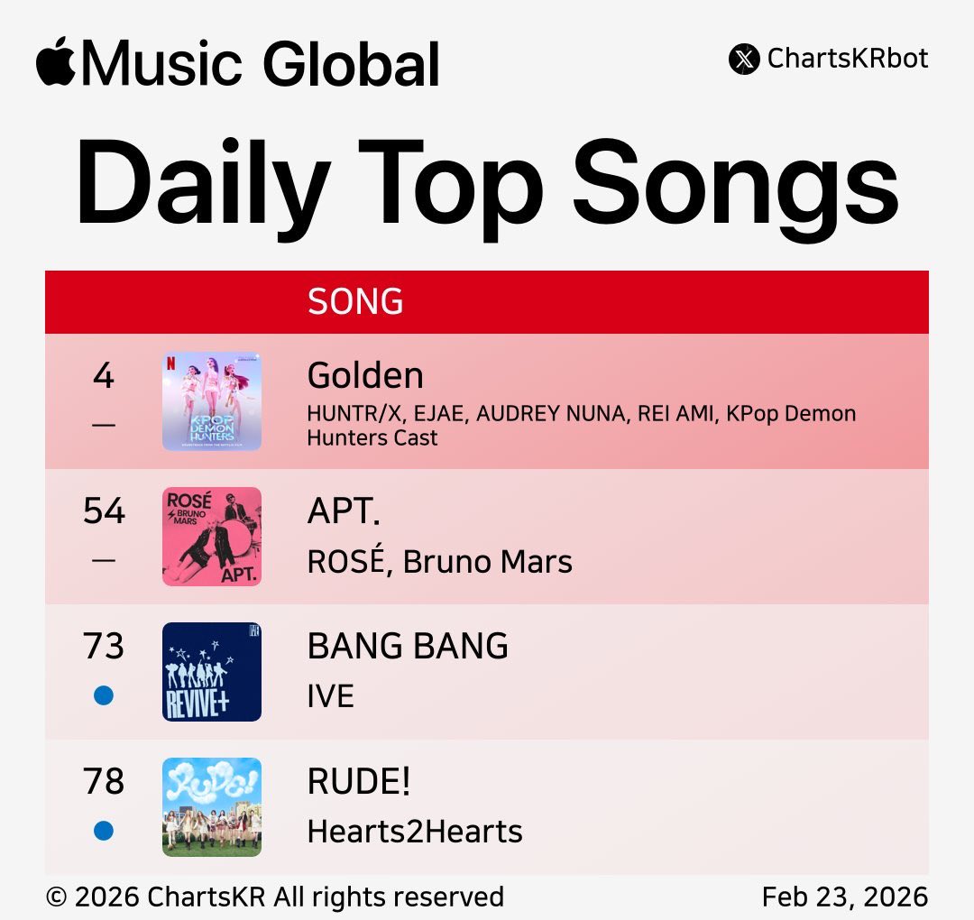 Hearts2Hearts “RUDE!” เข้าสู่ Apple Music Daily Top 100 Songs Global ได้สําเร็จ