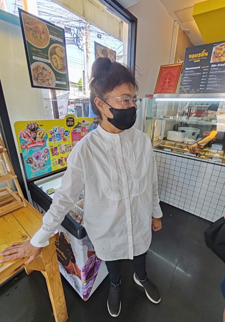 ผมบอกว่าอย่ายืนเลยเดี๋ยวเมื่อย มานั่งจับเข่าคุยกันนะ 555 ป้าเป็นคนพิปูน นครศรีธรรมราช ที่พิปูนไม่มีหน้าร้านนะครับ มาเปิดที่ กทม.นี่ที่แรก