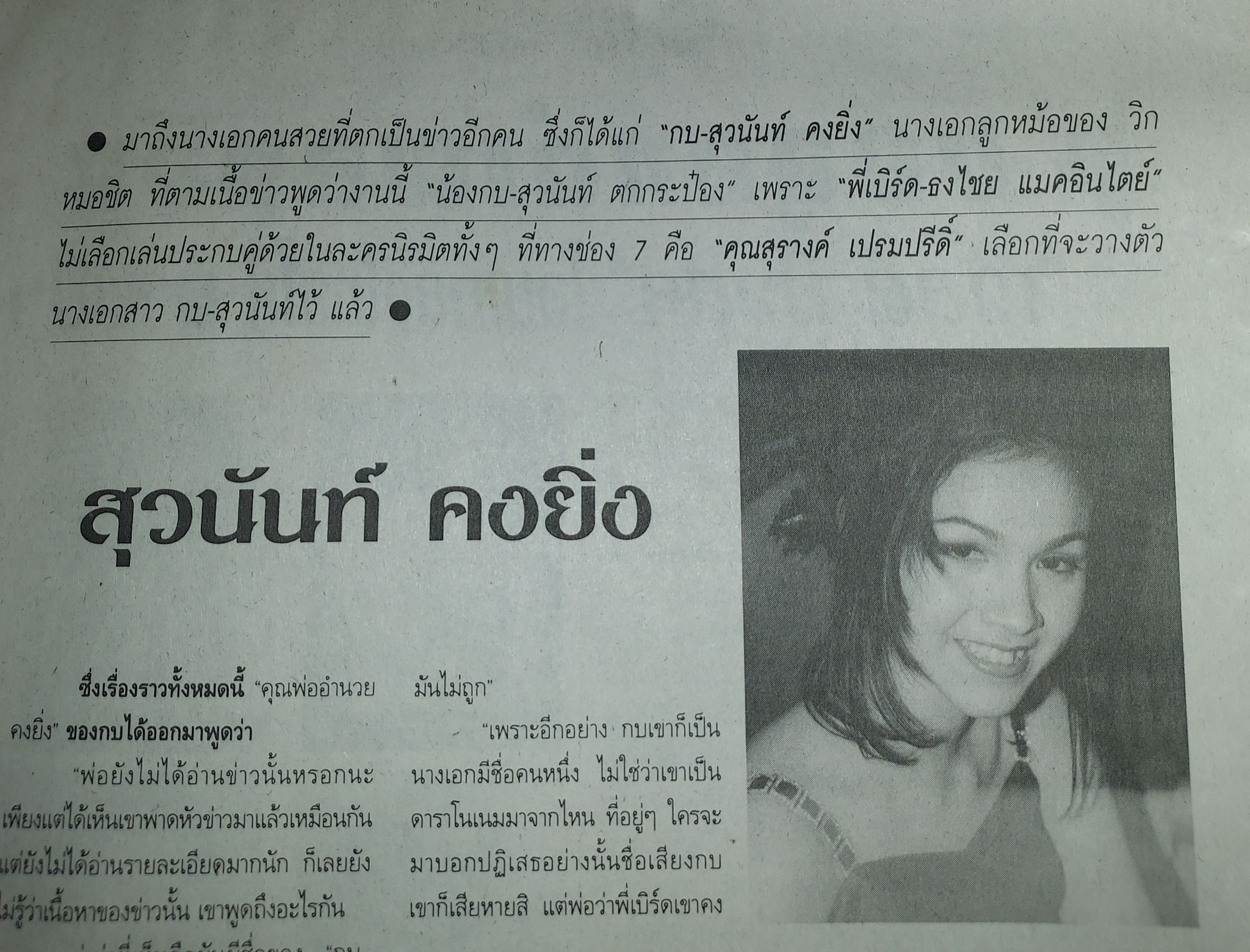 กระทั่งเรื่อง "ดอกไม้สีม่วง" ของ "วราภา" ที่เคยร่ำ ๆ ว่าจะสร้าง แต่ก็ไม่เป็นรูปเป็นร่าง จนต้องพับฐานไปในที่สุด โดยเรื่องนี้เจ้าแม่วิกหลายสี ต้องการจับคู่ "เบิร์ด-กบ" ให้ได้เลยค่ะ ทว่าติดปัญหาหลายด้าน ทั้งจากตัวพระเอกเอง และงบประมาณ เพราะต้องบินไปถ่ายทำถึงประเทศสหรัฐอเมริกา