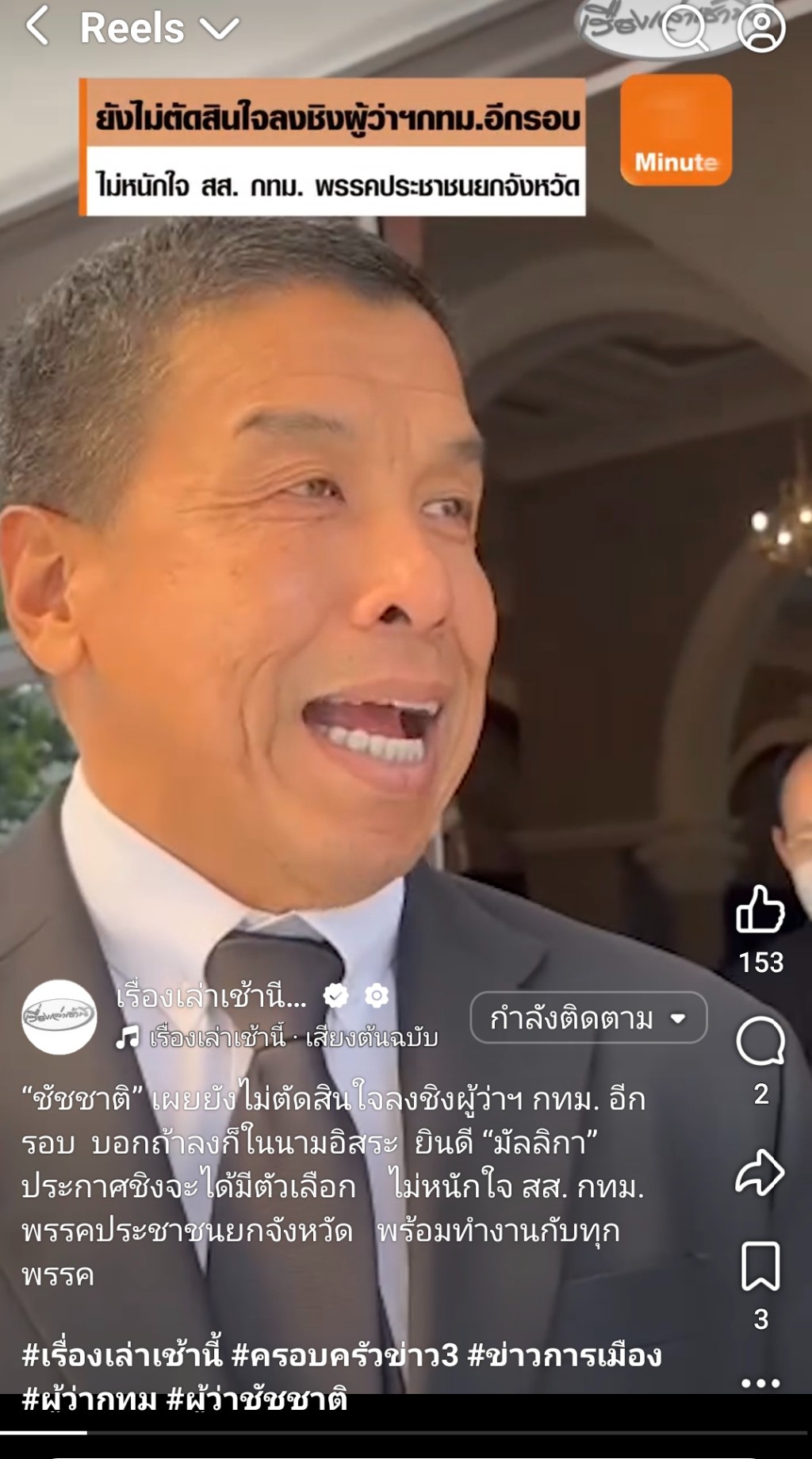 ชัชชาติ ยังอุบว่าจะลงผู้ว่าสมัยหน้ามั้ย เจ้าตัวยินดีมัลลิกาลง เปรยเป็นตัวเลือก