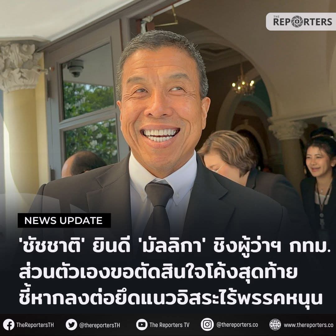 ชัชชาติ เผยยังอุบไม่ขอตอบว่าจะลงสมัยหน้ามั้ย แต่หากลงก็คงลงในนามอิสระ พร้อมทำงานกับทุกภาคฝ่าย ไร้แรงกดดัน ไม่แบ่งแยก และยินดีหากมัลลิกาจะเสนอตัว ถือเป็นตัวเลือกคนกทมอีกทาง