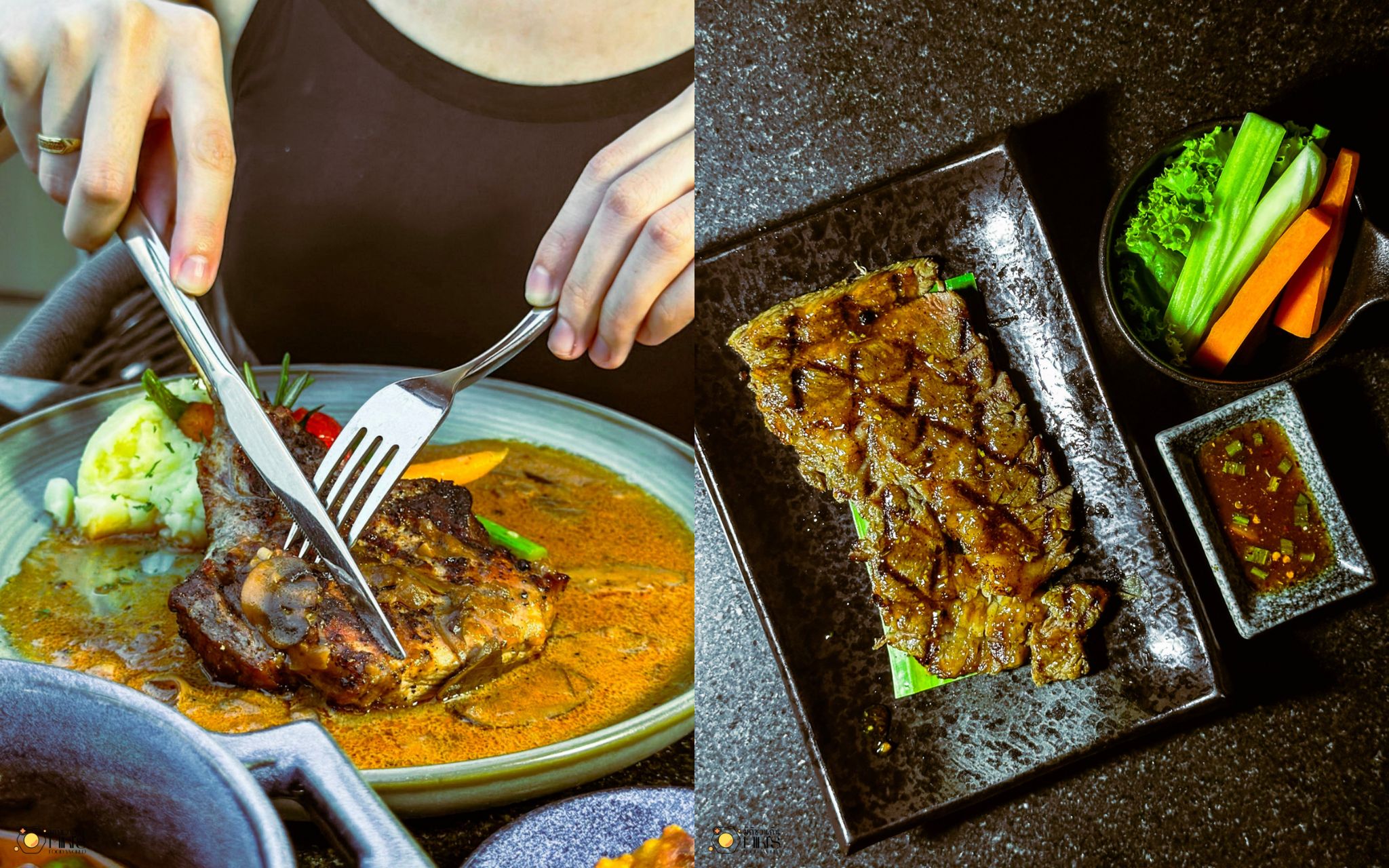 พอร์คช็อปซอสเห็ด (520) พอร์คช็อปชิ้นโตเนื้อนุ่มชุ่มฉ่ำ ย่างมาความสุกกำลังเป๊ะ ราดด้วยซอสเห็ดที่ผ่านการเคี่ยวจนรสชาติเข้าเนื้อเข้มข้น เป็นจานหลักที่สายหมูต้องประทับใจ